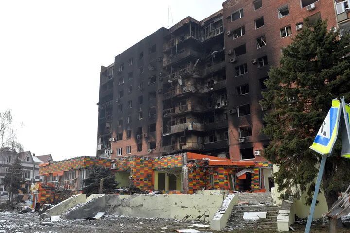 这是2月7日拍摄的波克罗夫斯克市中心被炸毁的建筑。新华社发(彼得·德鲁克摄)